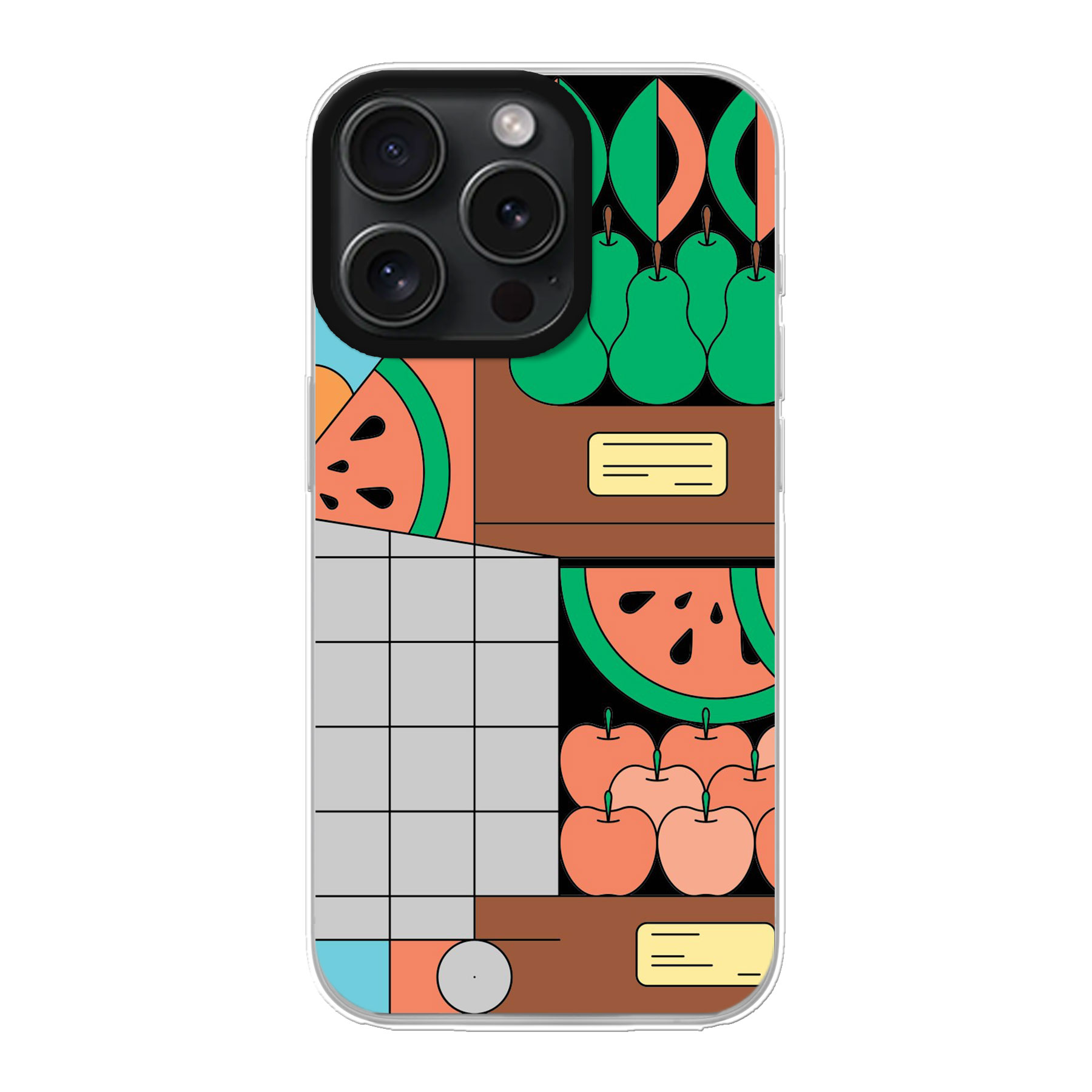 Suojakuori suojaa puhelimet takapuolen ja reunat, mutta ei näyttöä. Tässä suojakuoressa painatus tulee takapuolelle, suojakuoren reunat jäävät läpinäkyviksi.