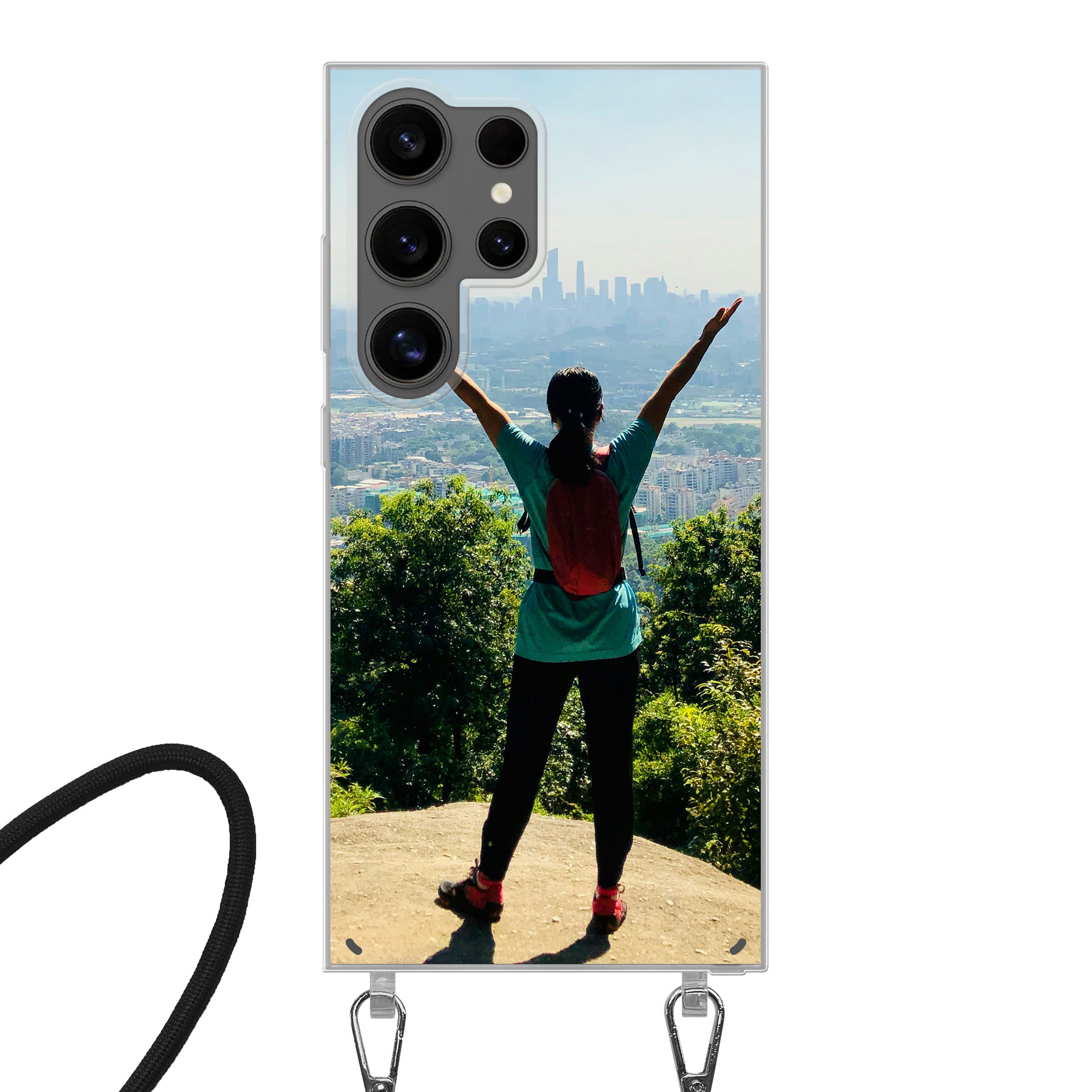 Samsung Galaxy S24 Ultra suojakuori kantohihnalla omalla kuvalla